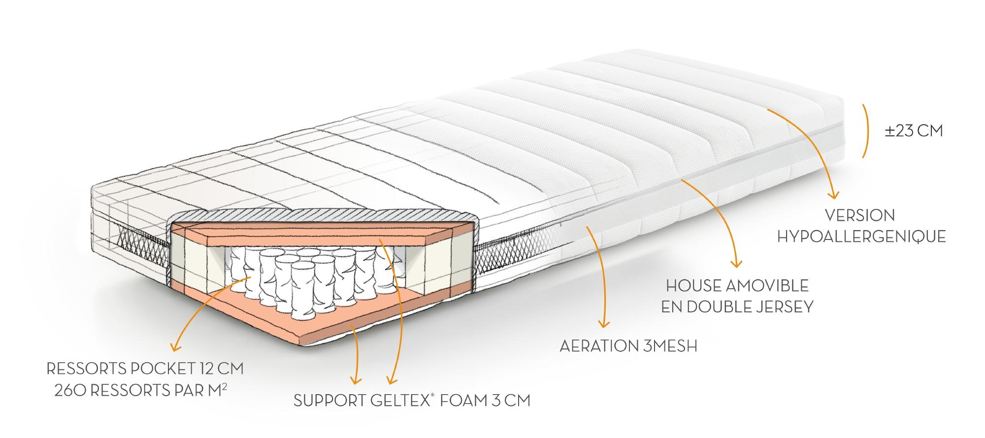 - Supportlaag boven- en onderzijde: 3 cm GELTEX® Foam