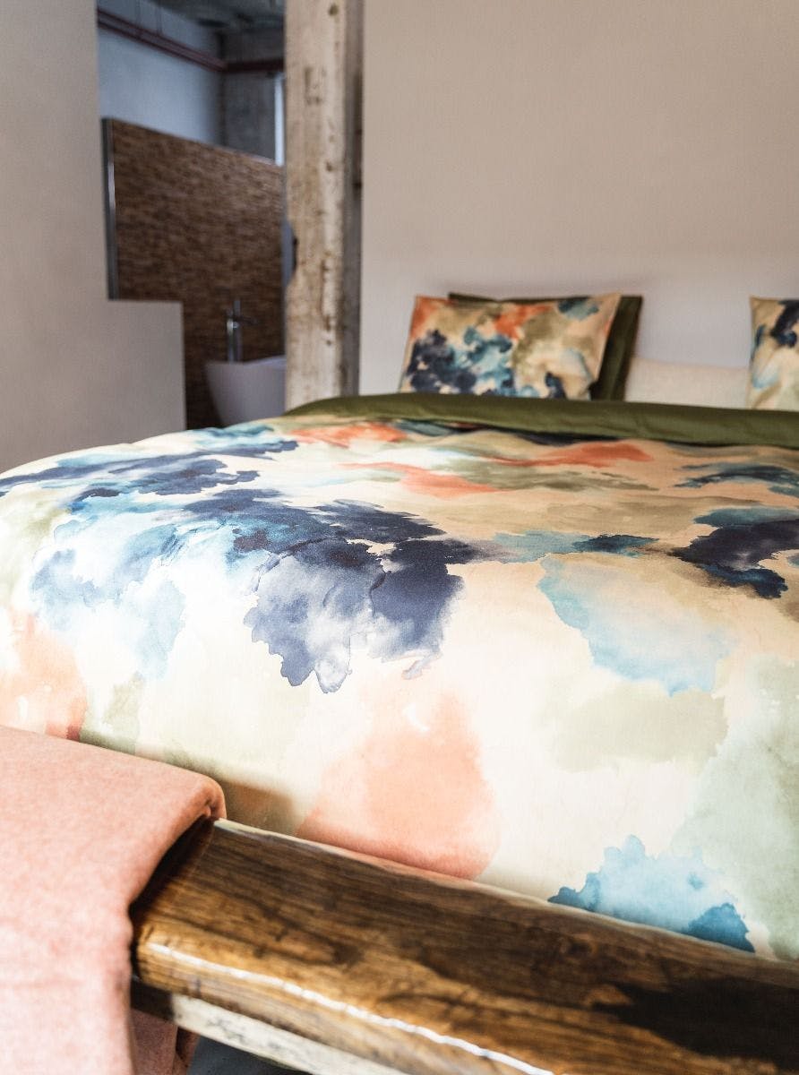 Dekbedovertrek Abe is gemaakt van 100% biologisch katoen-satijn met de fijnste garens voor een extra soepel en zacht gevoel. Het overtrek is geproduceerd volgens de strenge normen van het GOTS-keurmerk. Hierdoor ben je er zeker van dat het dekbedovertrek geen schakelijke stoffen en nare chemicalien bevat. De print op de voorkant van dekbedovertrek Abe bestaat uit een gevlekt patroon in prachtige warme kleuren die erg mooi bij elkaar passen. De achterkant van het overtrek heeft een mooie, warme dondergroene kleur die je slaapkamer een heerlijk warm gevoel geeft. Het product zit in een opbergtas van de eigen stof. Zo krijg jij direct een voorproefje van het overtrek. Al onze producten die wij aan jou bieden, dragen een Kayori-label. Hierdoor draag jij automatisch bij aan een beter milieu en veilige en humane omstandigheden.