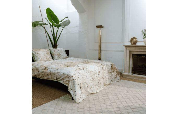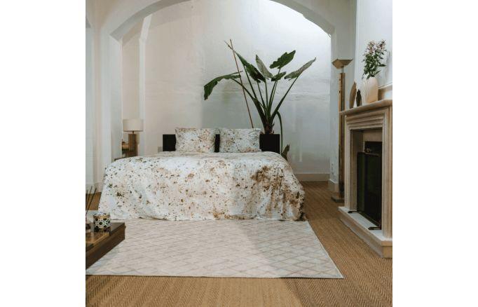 Dekbedovertrek Takara heeft een gevlekt patroon in rustige neutrale kleuren. De donkere vlekken steken mooi af tegen de off-white achtergrond.