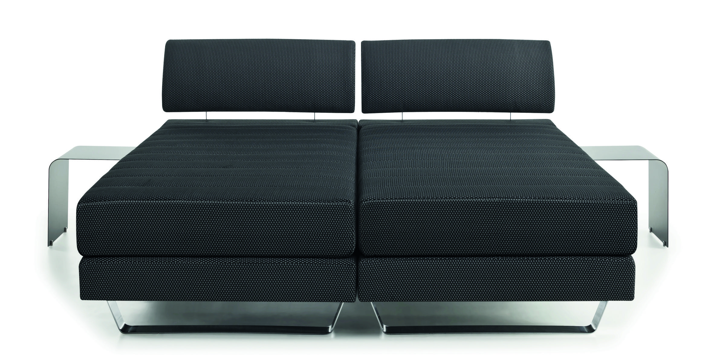 Outline: een bedconcept voor moderne interieurs waar licht en ruimte centraal staan. De uitgesproken strakke vormgeving van dit bed vertelt een verhaal van esthetiek, ergonomie