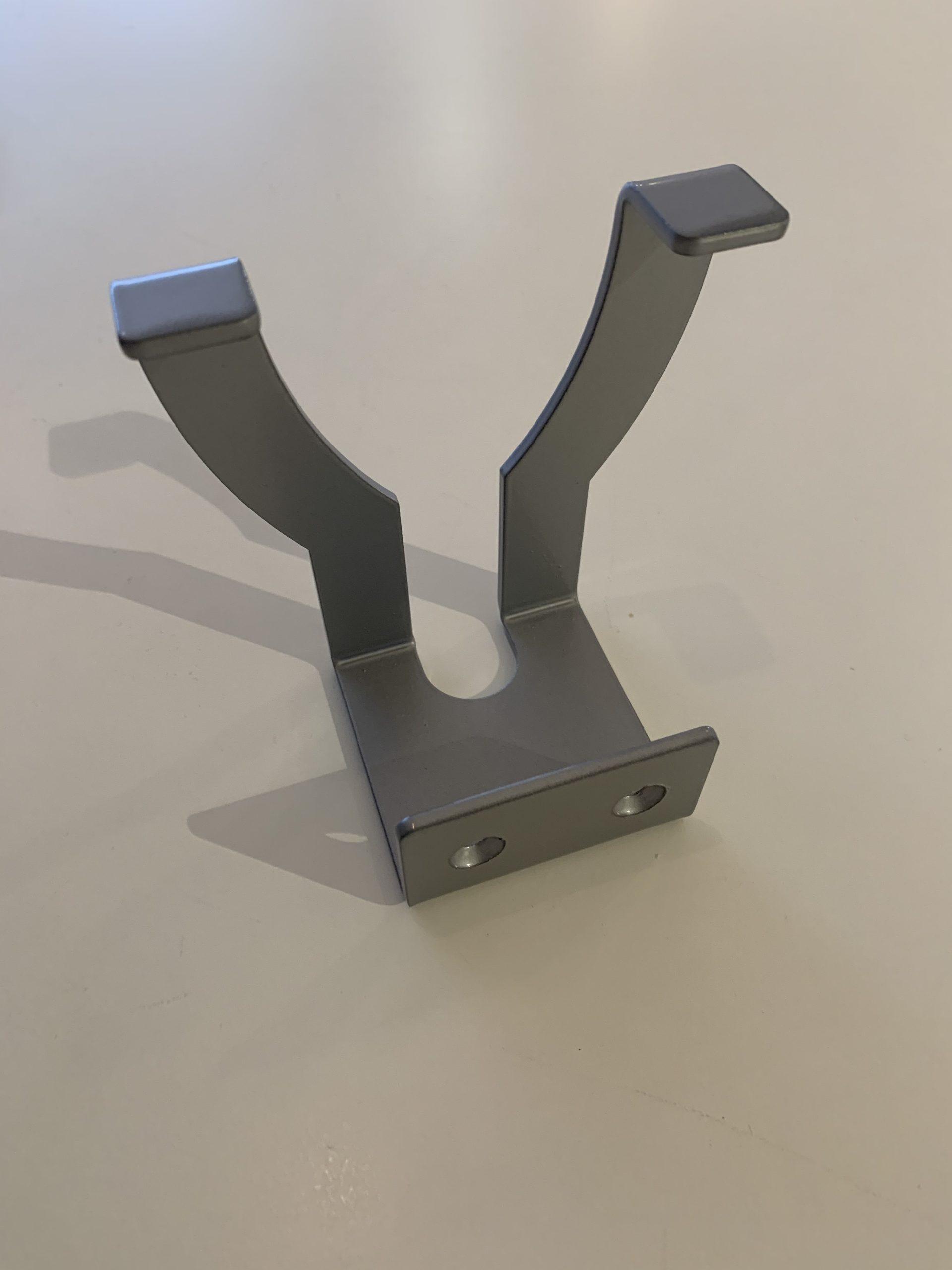 Nette metalen alu kleurige afstandsbedieningshouder voor elektrisch verstelbare boxspring. Met twee schroefjes aan de binnenkant te monteren.