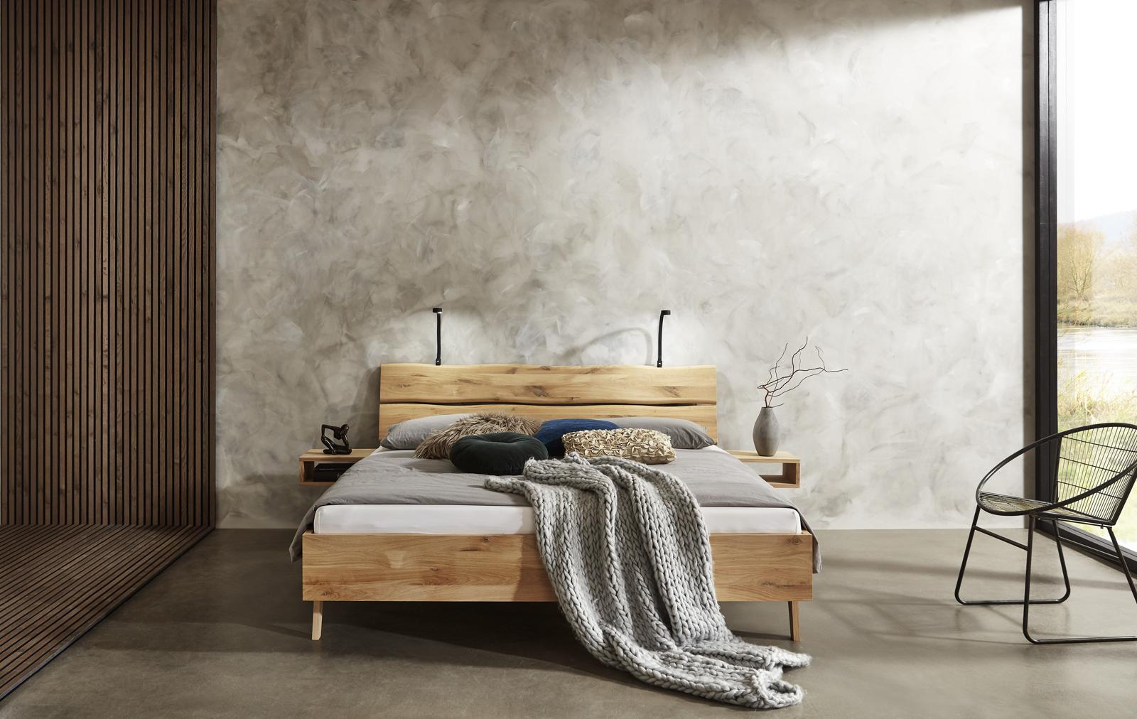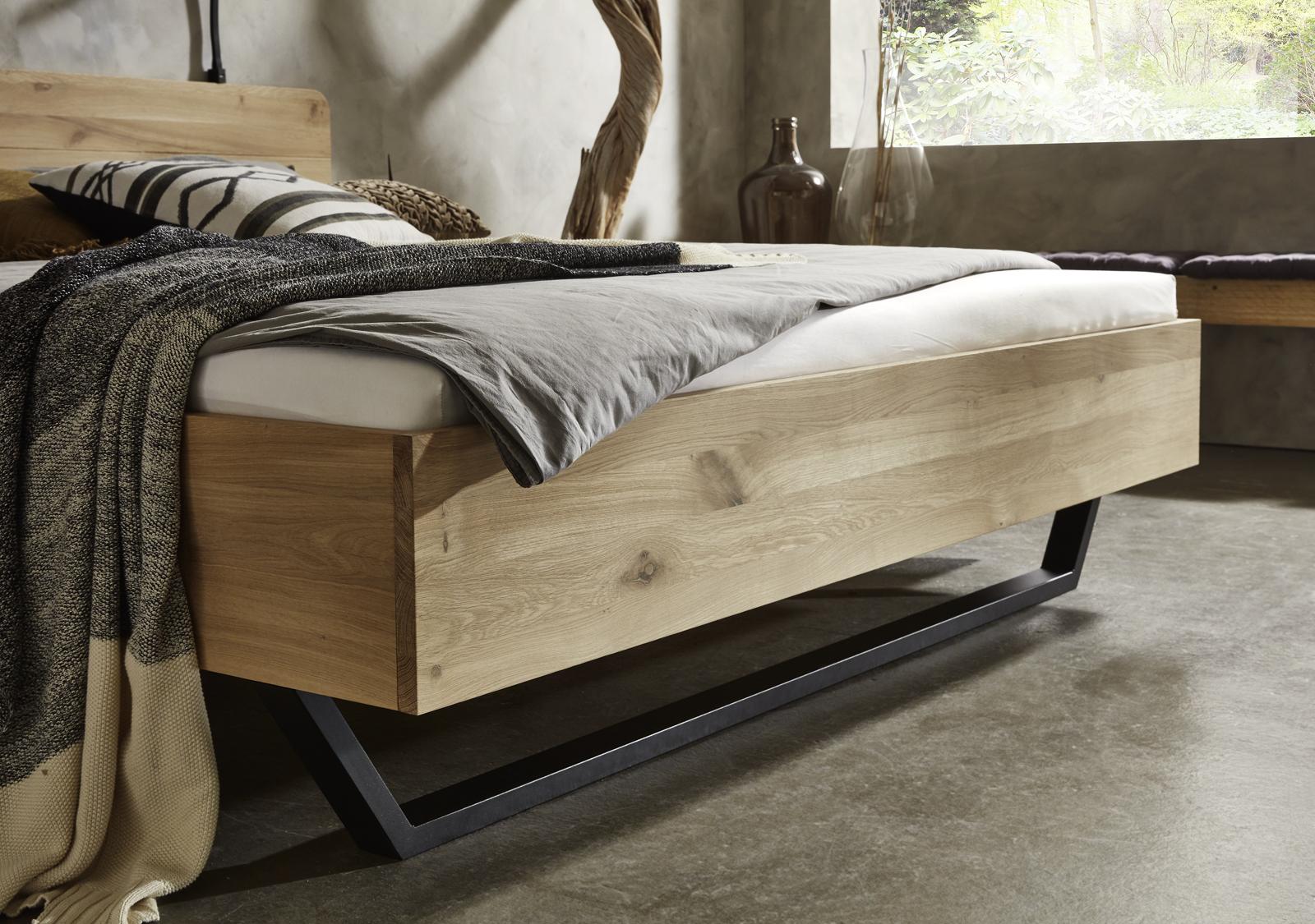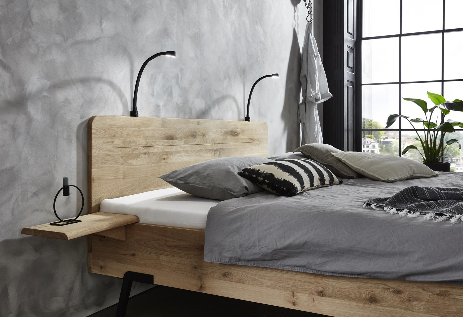 Mooi massief eiken ledikant Rough Kleur naturel inclusief middenbalk+dragers en met poten Skate. Poten Luge is meerprijs. In diverse maten leverbaar en diverse nachttafeltjes. Hoofdbord
