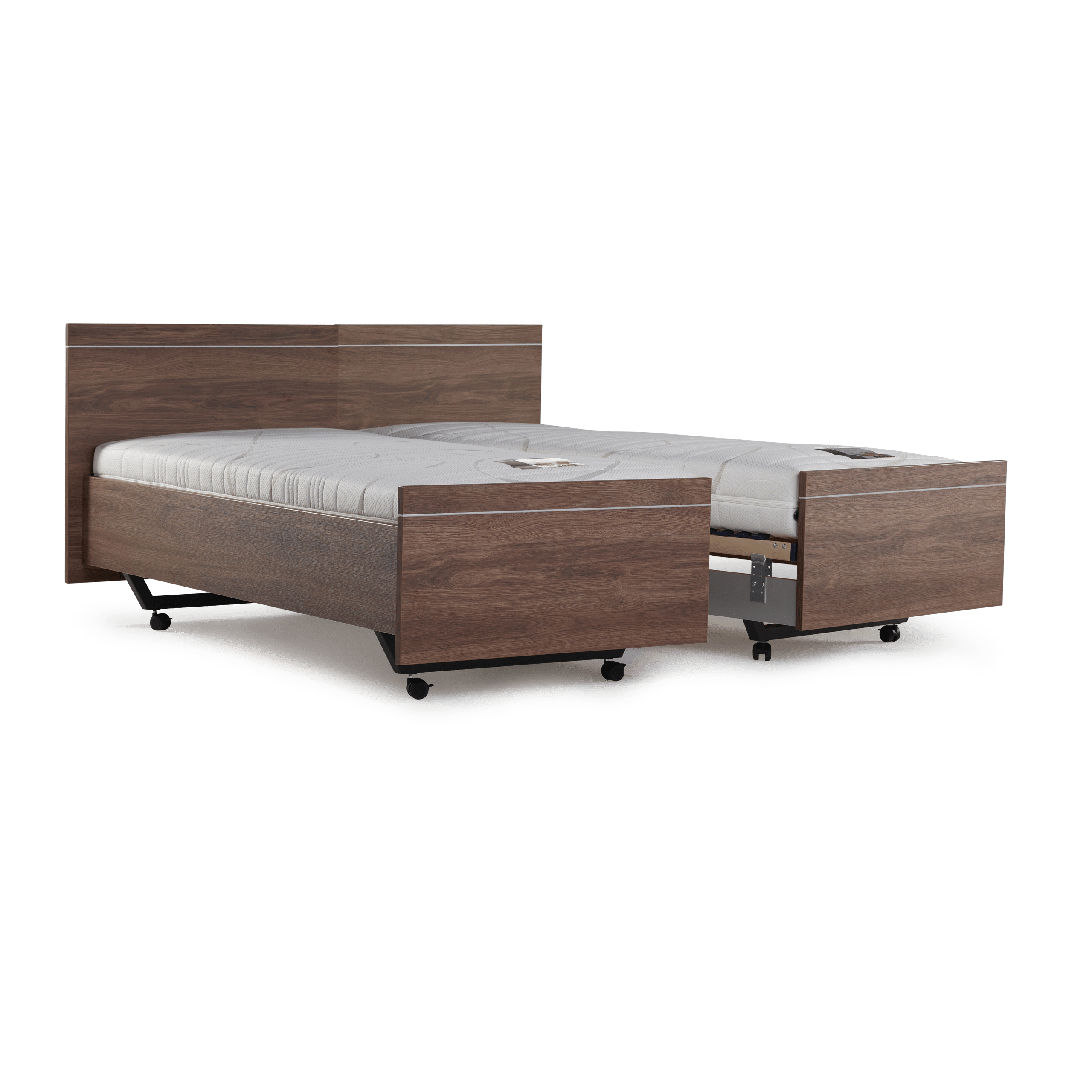 1- en 2-persoons deelbaar comfort ledikant op wielen in de kleuren white, Tobac, Gold , Cenza.
