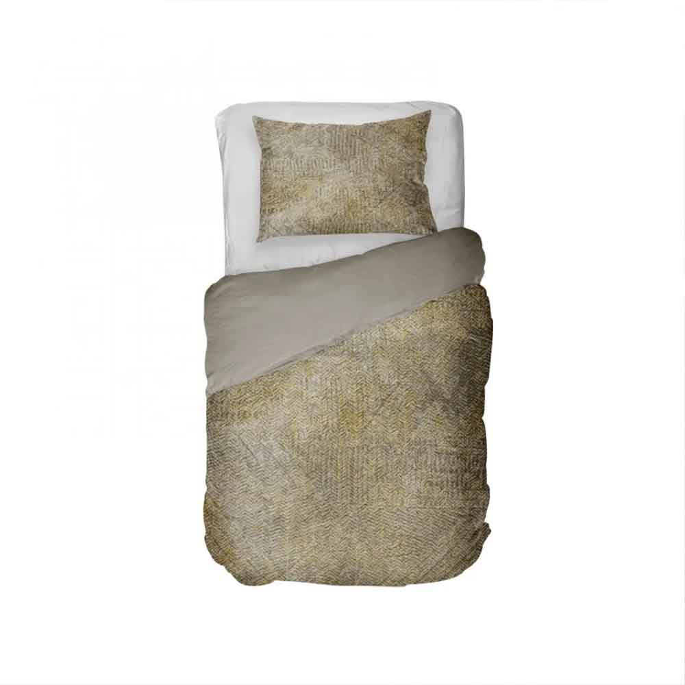 Dekbedovertrek Iwaki heeft een grafische zigzag print met op de achtergrond een verloop van verschillende kleuren. Het overtrek is goed te combineren met een zandkleurig hoeslaken. Om de Ikawi er echt uit te laten springen, kun je kiezen voor een okergeel hoeslaken. Deze kleur komt weer terug in het overtrek.