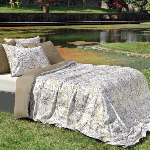 Het Dommelin dekbedovertrek Ardesch Brons is uitgevoerd in een fijne kwaliteit satijn van 400 threadcount. Een weelderig tafereel van grote bladeren siert de bovenkant, de
