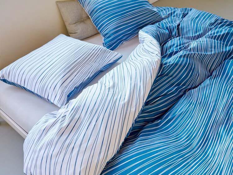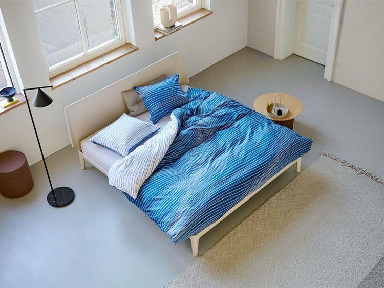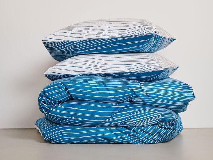 Overtrek van katoensatijn met golvend lijnenspel net als een rustig kabbelend watertje. De ene zijde van het overtrek is helder blauw van kleur met onregelmatige zachte witte lijnen. Aan de andere zijde voert warm wit met frisse blauwe lijnen de boventoon. Met dit overtrek heb je dus twee keuzes en geef je je slaapkamer in een handomdraai een compleet andere look. Het overtrek Tide past mooi op een bed in een lichte tint of ga je voor een gedurfde combinatie op een Original blue bed.
