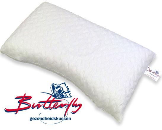 Het summum onder de nekkussens !! Natuurrubber kussen met ingebouwde nekondersteuning. Leverbaar in twin 18 cm, en diverse hoogte 9-12-14 cm. Speciaal voor diegene die extra hoge eisen stelt aan de juiste nekondersteuning. Gezonde nachtrust Hoofd- en nekpijn zijn vaak de gevolgen van een verkeerde slaaphouding. Er ontstaat een te sterke belasting van de hals- en borstwervels omdat de traditionele hoofdkussens vaak op de verkeerde plaats een verkeerde ondersteuning geven. Elk Butterfly gezondheidskussen geeft ongeacht de vorm en gewicht van uw hoofd een gelijkmatige ondersteuning. Daarbij worden nekwervels zodanig ondersteund dat zenuwbanen beter tot rust komen. Dit gebeurt dankzij een ingenieus nekrol systeem binnenin de hoogwaardige natuurrubber kussenkern. De gepatenteerde vormgeving van Butterfly kussens is tot stand gekomen uit onderzoek naar een goede slaaphouding in combinatie met aangenaam slapen. Het Butterfly gezondheidskussen is leverbaar in diverse hoogtes. Zo is er voor elke schouderbreedte en matrastype een Butterfly kussen leverbaar. Samen met uw slaapspecialist bepaalt u de juiste uitvoering van dit unieke hoofdkussen.