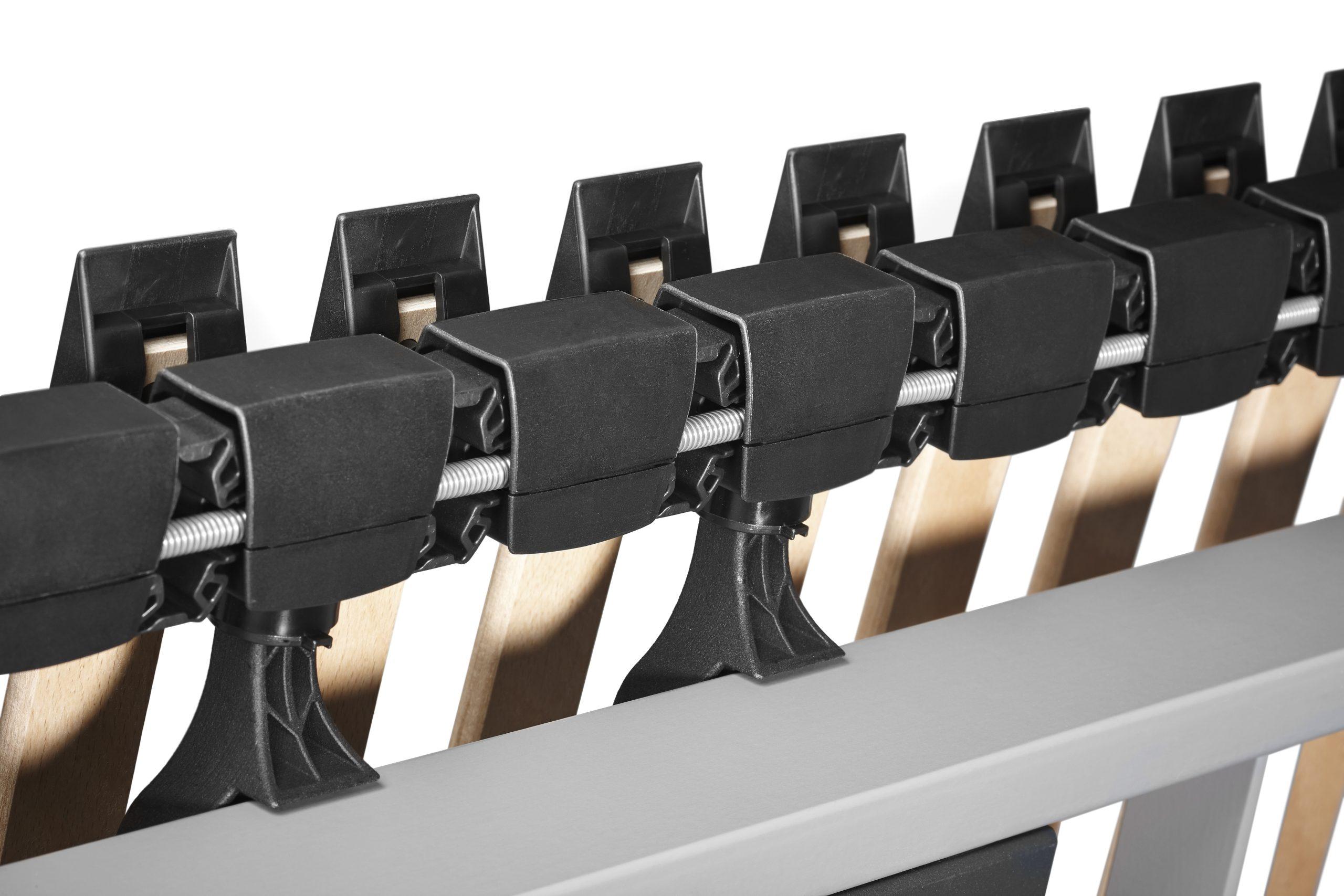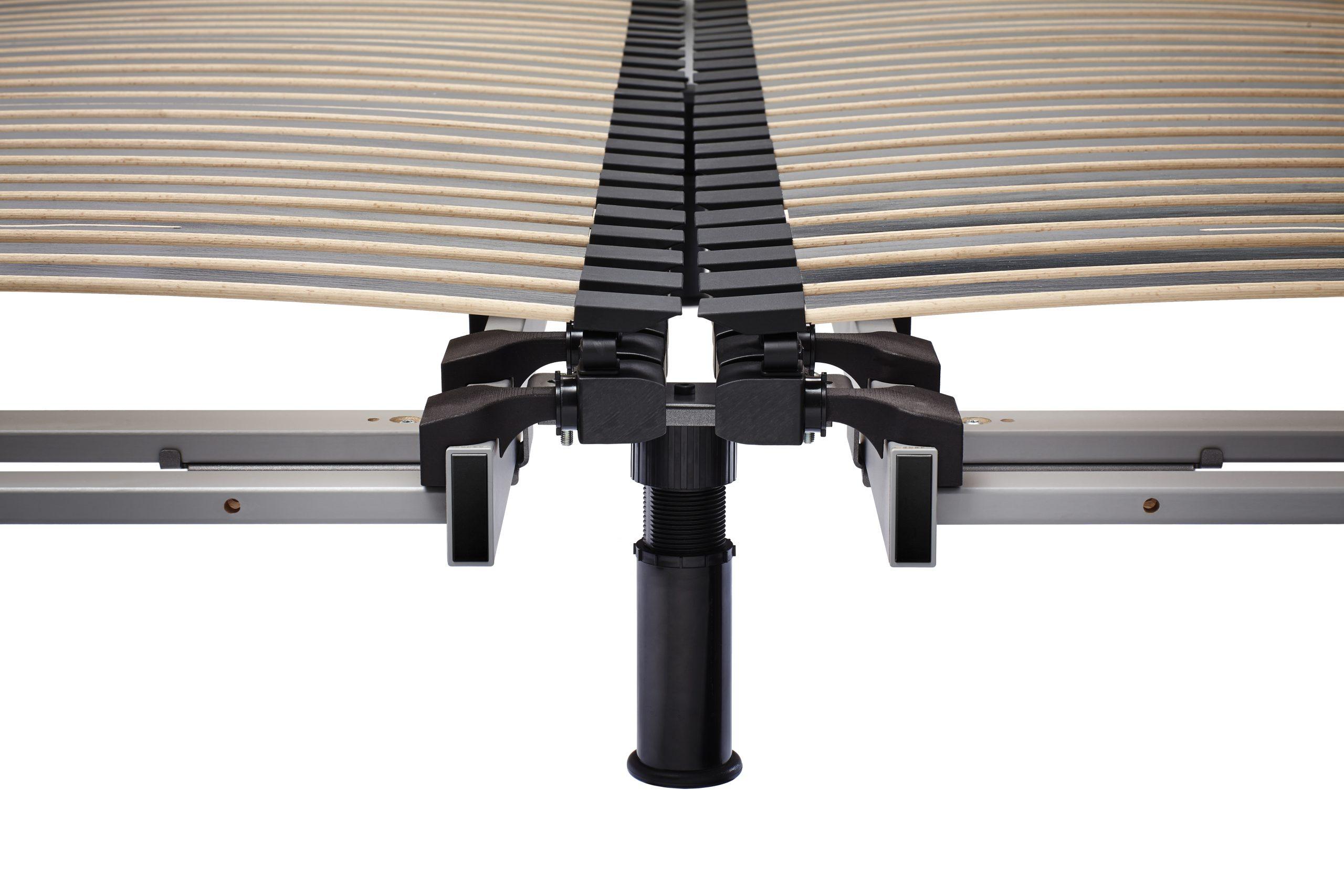 - Ontlasting op maat:De afzonderlijke modules van hoogwaardig kunststof omsluiten de latten door middel van een manchet. De daarmee verbonden modulecorpus beschikt van binnen over een stalen veer, die heel nauwkeurig op belastingen reageert.