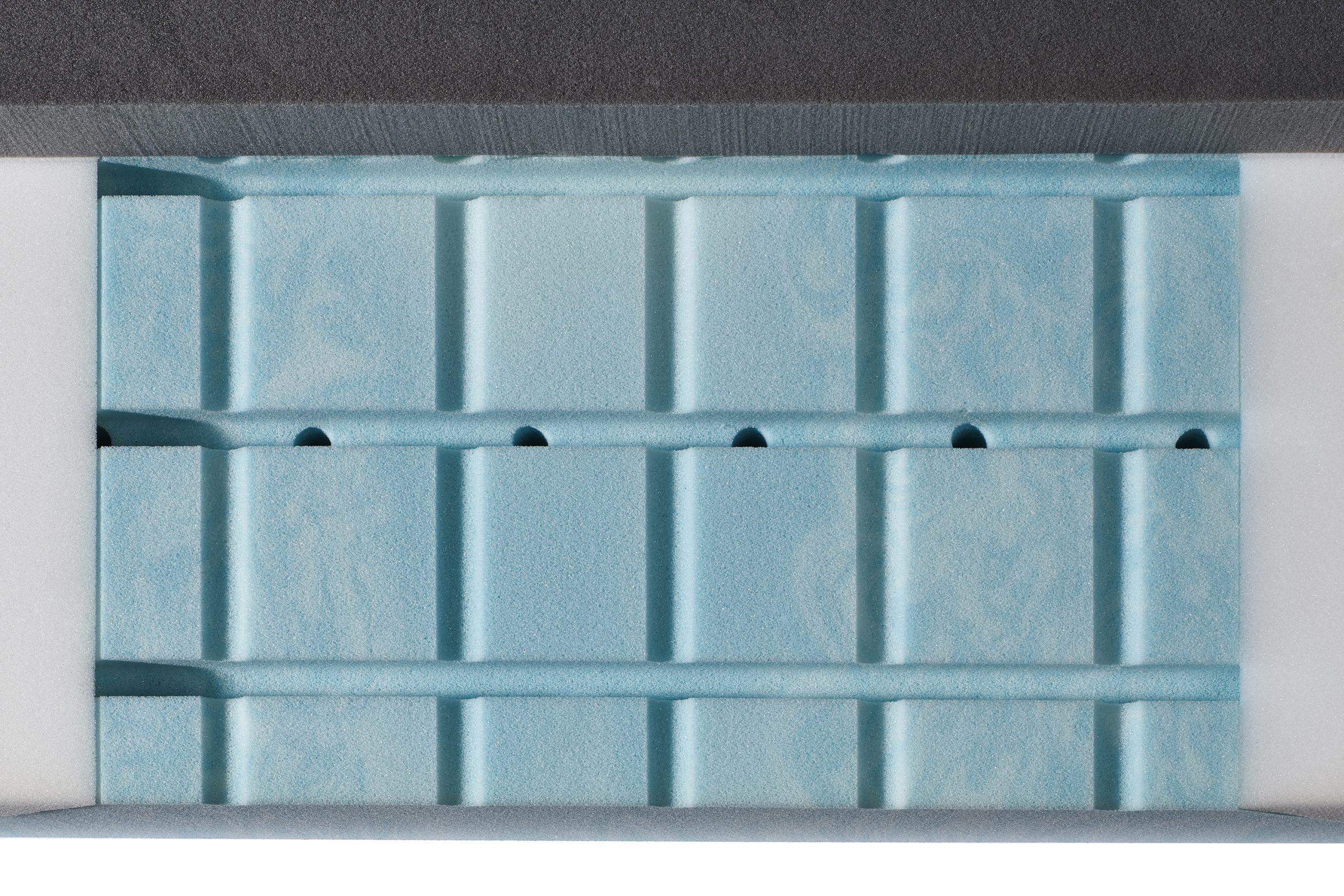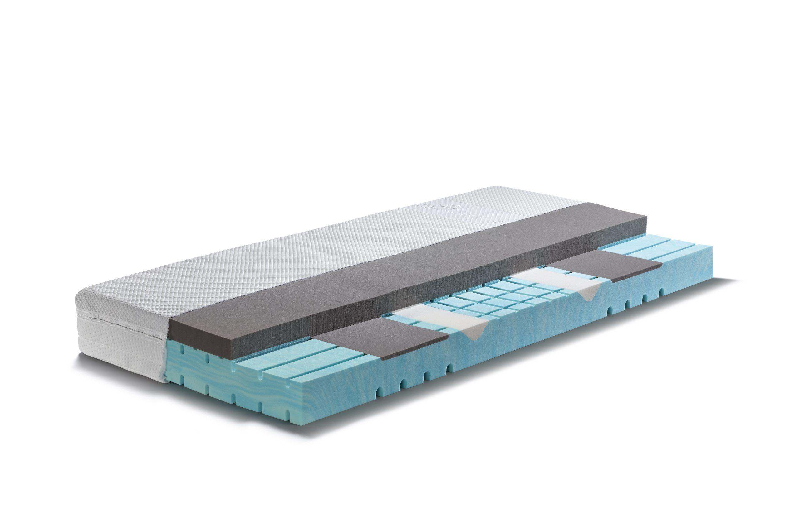 - Ondersteunend:Specifieke kern-inkepingen in de steunkern delen de matras op in zeven ergonomische zones voor doelgerichte ontlasting en ondersteuning. Extra inlegdelen van schuim in de lendenenzone optimaliseren de ondersteuning.