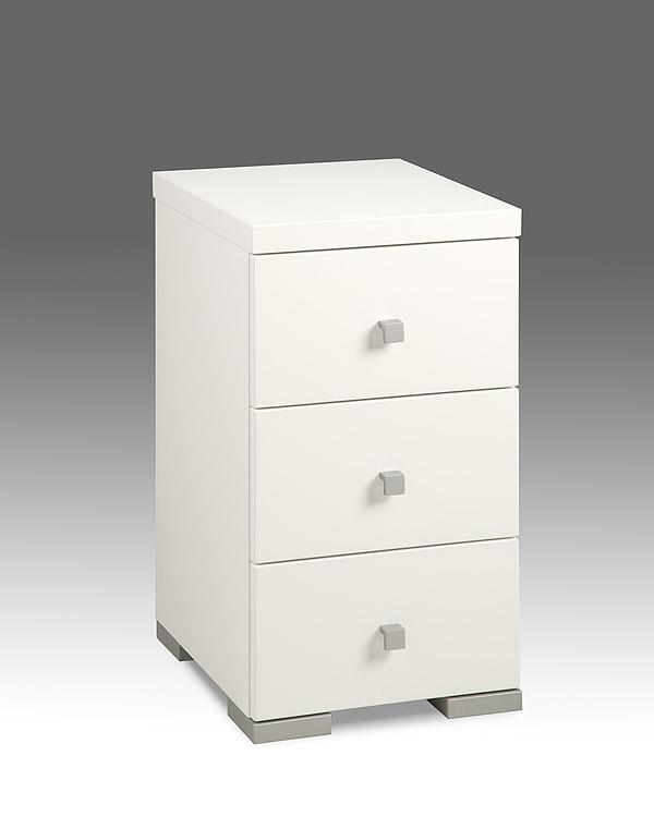 Zwaar massief nachtkastje Lotus met 3 laden. In de maat B35xD40xH65 In diverse kleuren Noten naturel, eiken naturel, alpine wit, wenge, kersen, alu. De houttinten zijn in echt houtfineer .